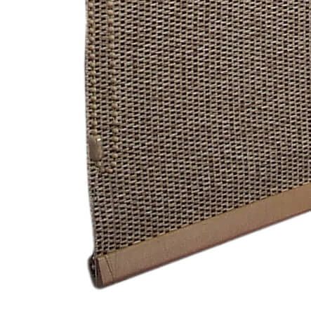 Confecționată integral din țesatură naturală de iută care se rulează pe un tambur, roleta poate fi ajustată la înălțimea dorită cu ajutorul unui lănțișor și a mecanismului de frânare.